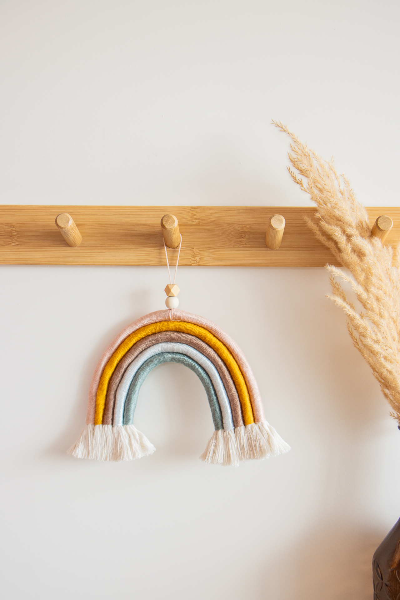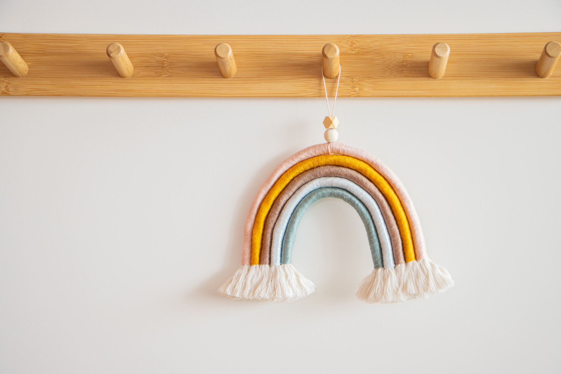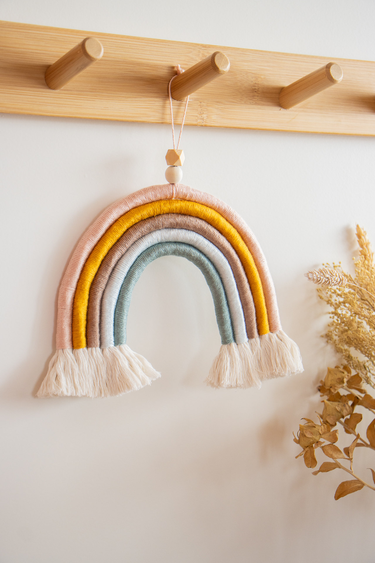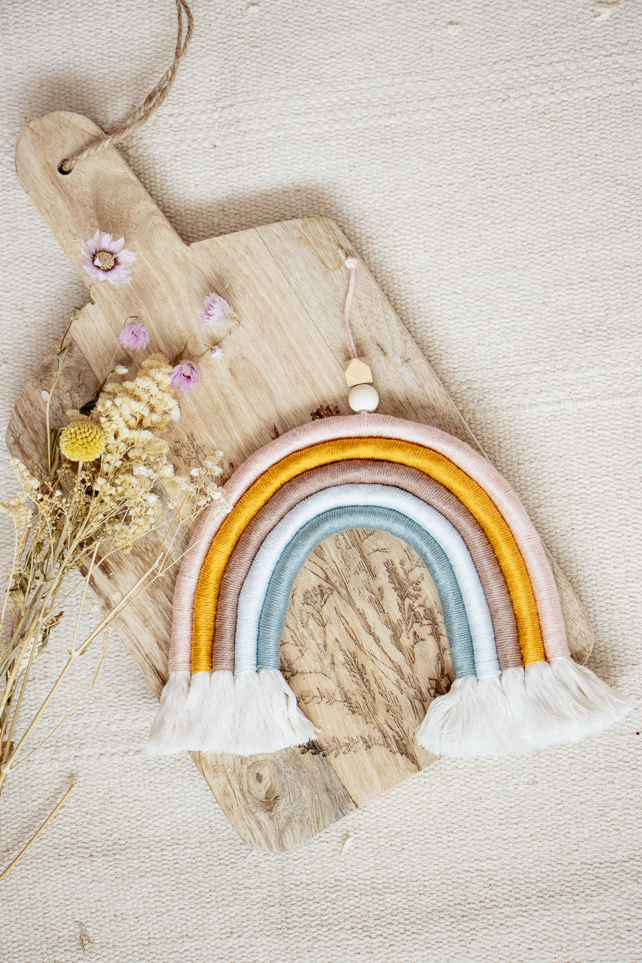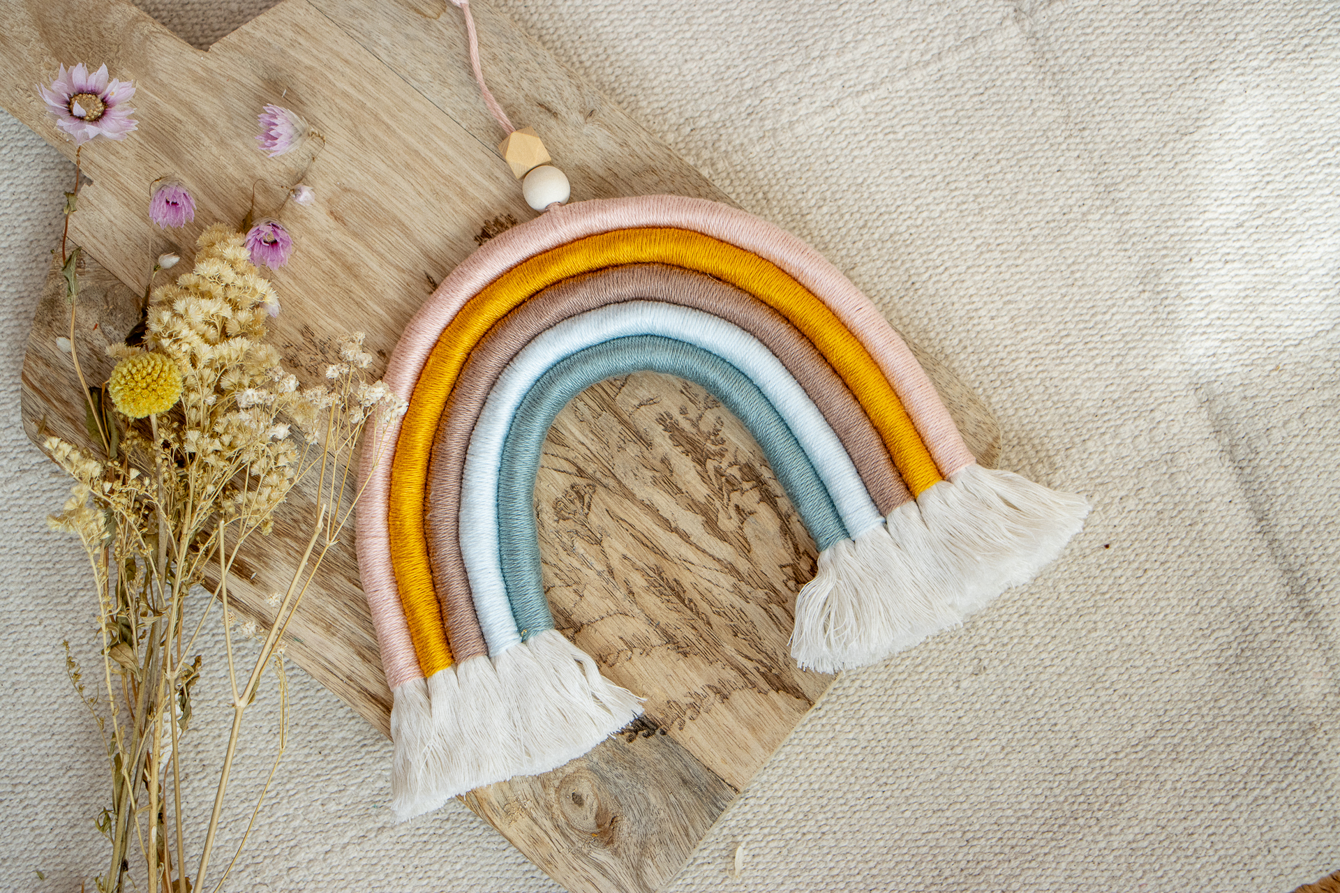 Pastel regenboogje voor babykamer en kinderkamer. Vrolijk iemand op met Macrame Regenboogje Fairy Garden. De vrolijke kleuren van dit regenboogje fleuren je interieur of de kinderkamer helemaal op. Ze is handgemaakt met een glimlach en veel liefde.
