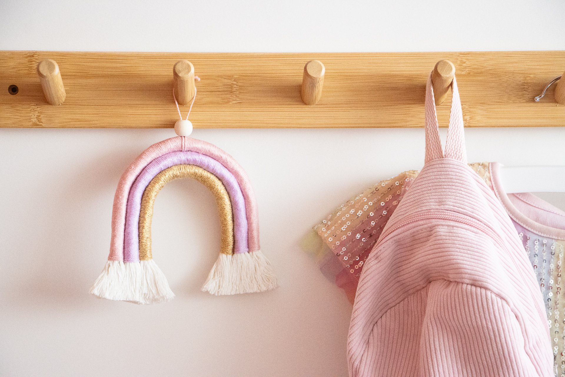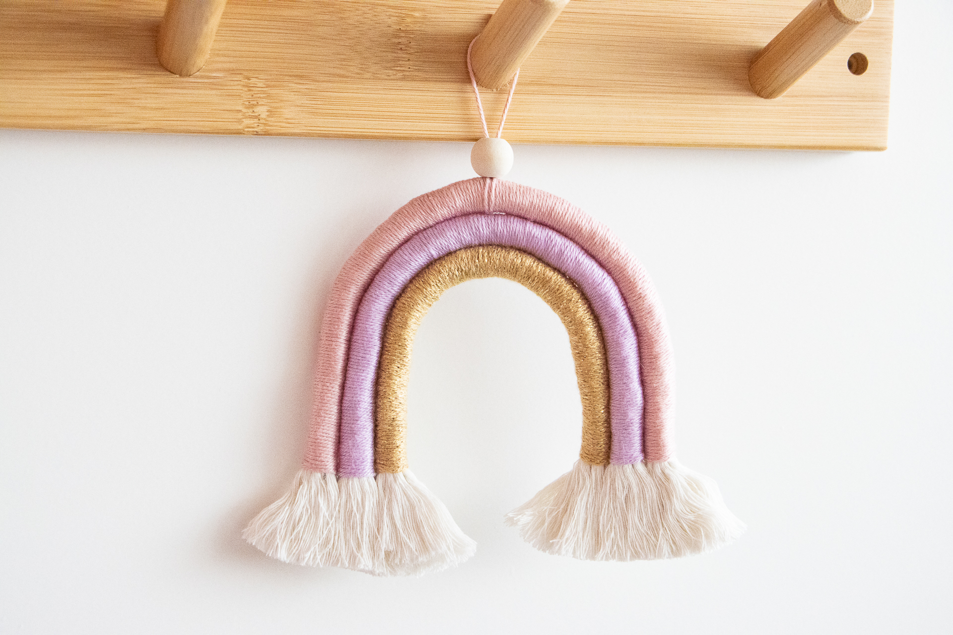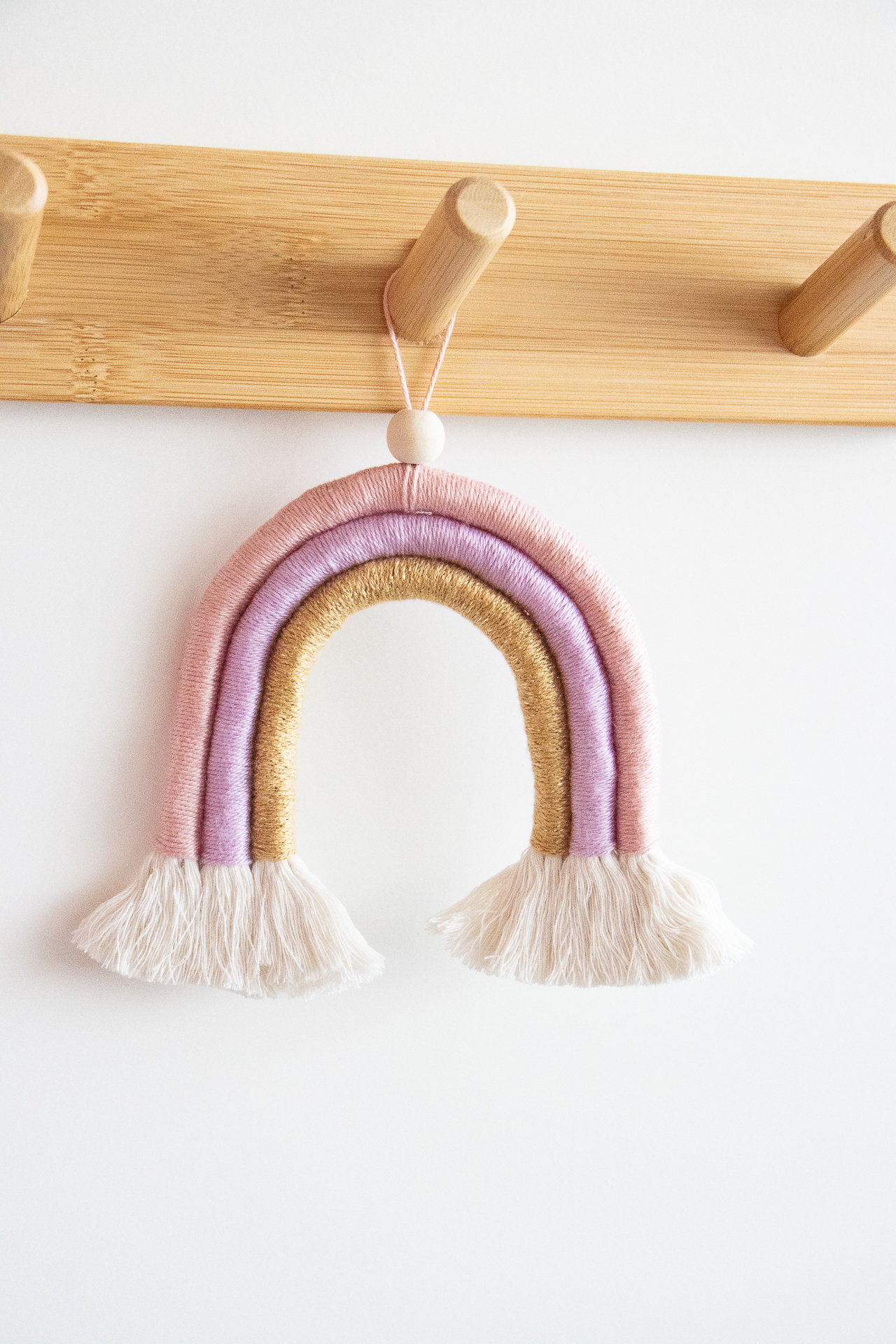 Dit lieve roze regenboogje Rosy Twinkle is handgemaakt voor iedereen die van roze en goud houdt. Perfect als kraamcadeau voor een meisje of in een roze kinderkamer.